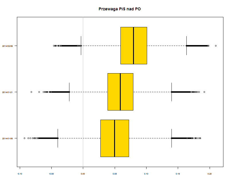 Ostatni ogłoszony sondaż został wykonany 2013-01-26 i przedstawię stan wg wyniku modelu zasilonego danymi od lipca 2010 aż do tego dnia.